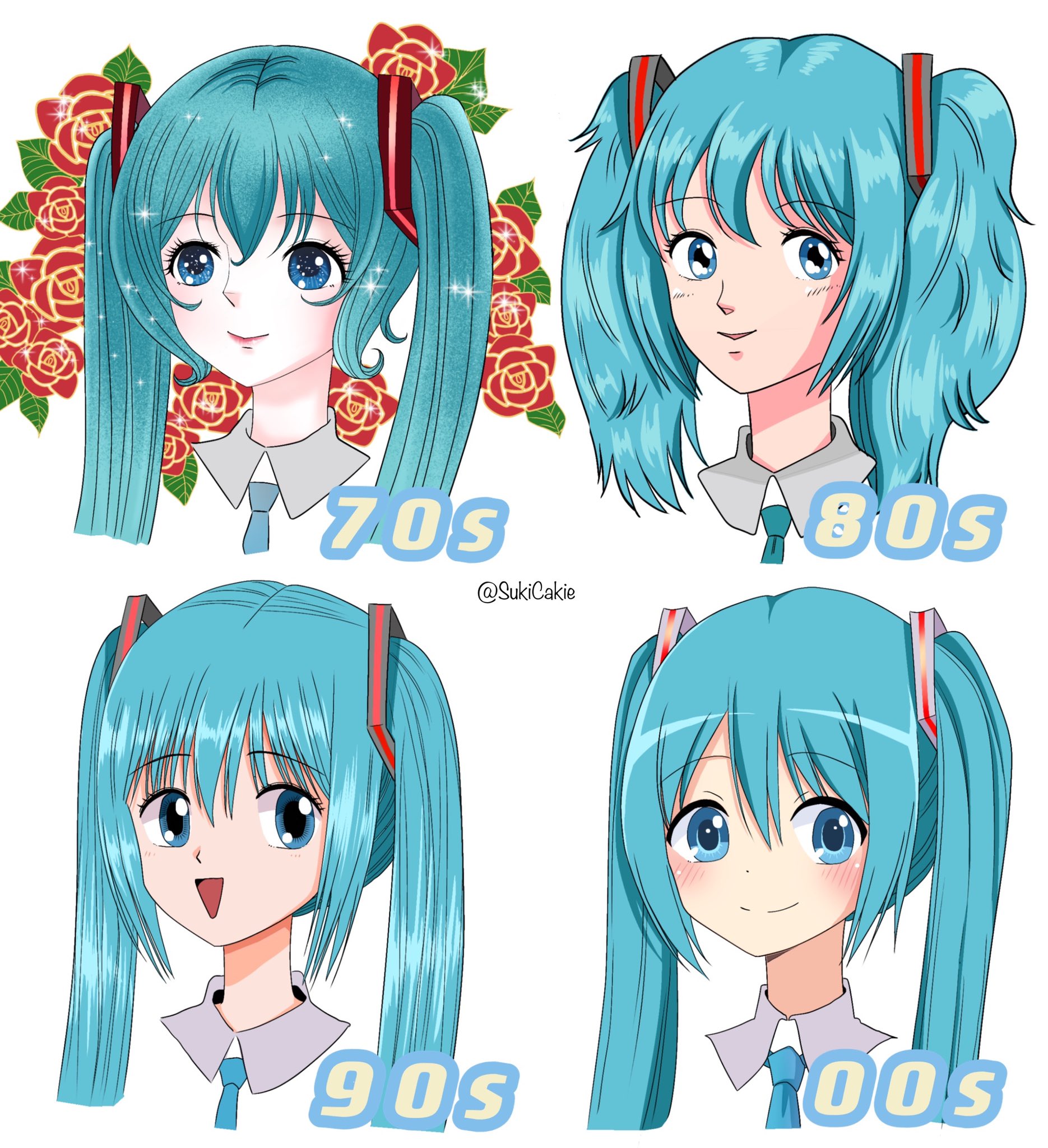 Sukicakie On Twitter Draw Hatsune Miku In Anime Art Style From 70s 00s Which One Do You Like The Most Hatsunemiku Hatsunemikudraw Mikuhatsune 90sanime 80sanime 00sanime Artstyle Artchallenge Animefanart Fanart